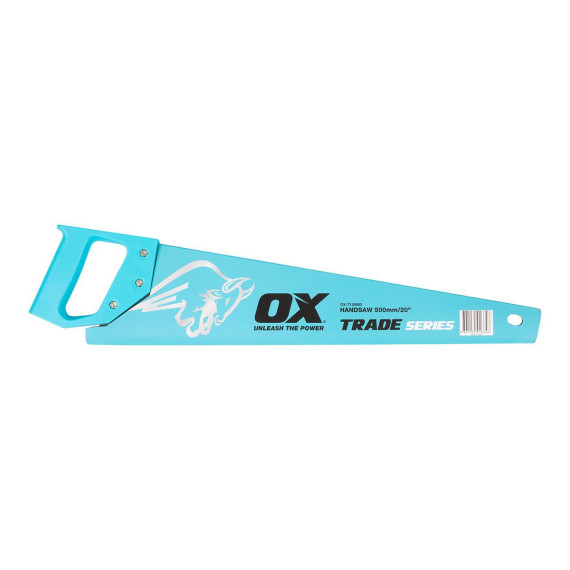 The OX Trade hand saw is a high quality 1mm steel blade with double ground and impulse hardened teeth for a fast clean cut.